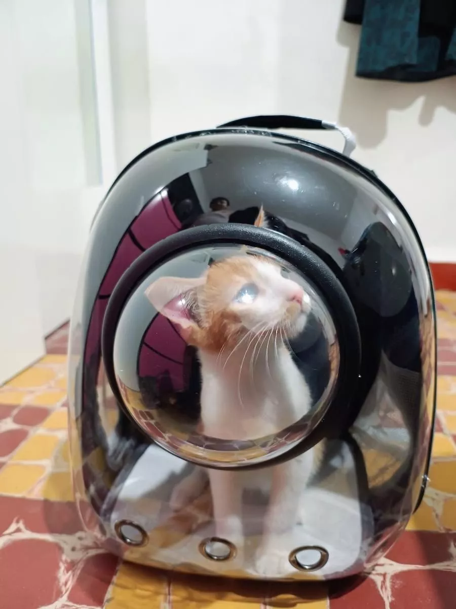this cat backpack is perfect for my needs. my cat loves being able to see everything through the transparent design, and the ventilation keeps them cool and comfortable. the backpack is well-constructed and sturdy, with padded straps that make it easy to carry. it’s stylish and functional, ideal for vet visits or outdoor adventures. my cat seems very comfortable and secure inside. it’s also easy to clean, which is a big plus. i’m very happy with this purchase and would highly recommend it to other cat owners looking for a quality carrier.